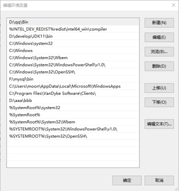 移动的好处:在CMD中打开软件时,会先找当前路径,再找环境变量,在环境变量中是从上往下依次查找的,如果路径放在最上面查找的速度比较快。